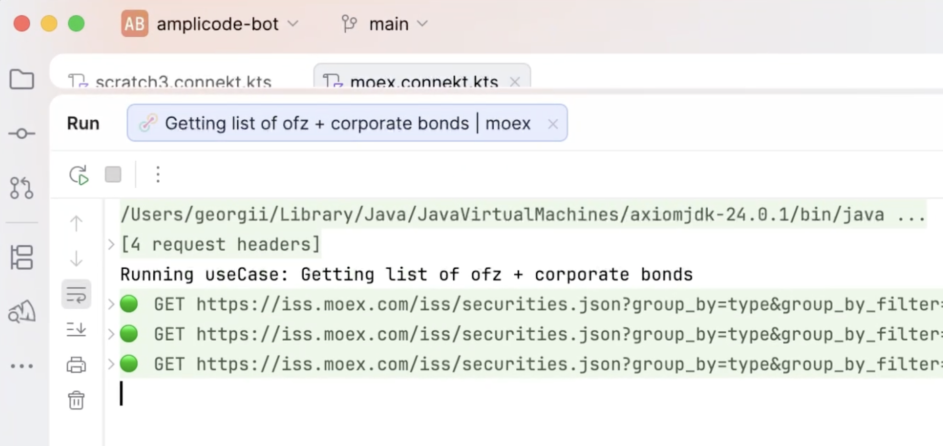 Заголовки запроса и ответа сворачиваются в отдельные под-блоки, тело запроса — отдельно. При выполнении use-case-скрипта с несколькими запросами каждый образует свой элемент.